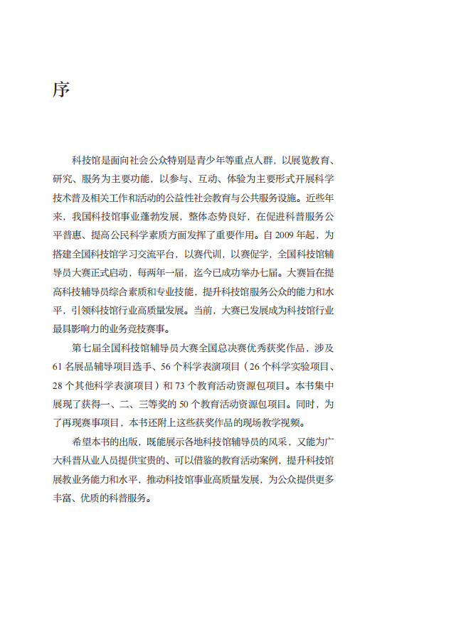 中国科学技术馆是我国唯一的国家级综合性科技馆,是实施科教兴国战略和人才强国战略、提高全民科学素质的大型科普基础设施。近几年,中国科技馆承担了3项国家级科研项目、省部级科研项目17项,横向科研项目4项,自主设立科研项目65项,合计89项。此外,组织编写了《科技馆研究文选》、《科技馆研究报告集》等学术图书,组织翻译了《当代科学中心》、《探索馆展品集》等国外著作。